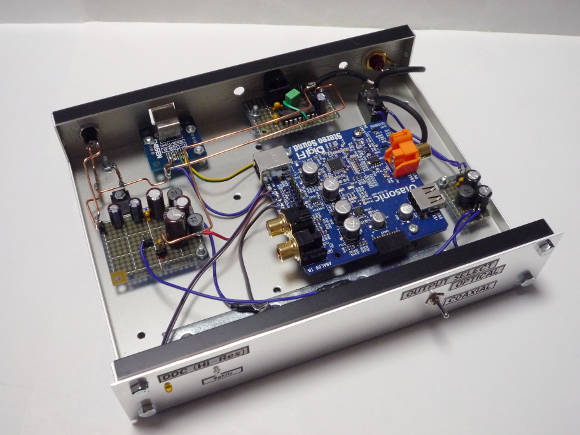 | 前面の切換えスイッチがOFFの時はリレーには電流が流れず、コアキシャルが選択されています。私の場合、通常はコアキシャル経由でDAC2を動作させていますが、DACを切換えて楽しむ時もありますので、その場合はオプティカル経由でDAC1を動作させます。 | |
