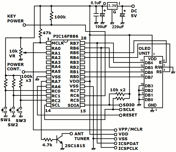 | AMループアンテナへの周波数の出力はRA7ポートを使います。上図のようにオープンコレクタで出力します。電池駆動から電源駆動にすることと、AMアンテナチューナーへの電源印加を含めて電源回路を改造します。 | ||||||||||||||||||||||||||||||||||||||||||||||||||||||||||||||||||||||||||||||||||||||||||||||||||||||||||||||||||||||||||||||||||||||||||||||||||||||||||||||||||||||||||||||||||||||||||||||||||||||||||||||||||||||||||||||||||||||||||||||||||||||||||||||||||||||||||||||||||||||||||||||||||||||||||||||||||||||||||||||||||||||||||||||||||||||||||||||||||||||||||||||||||||||||||||||||||||||||||||||||||||||||||||||||||||||||||||||||||||||||||||||||||||||||||||||||||||
