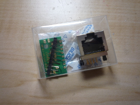 | LAN用のコネクタは秋月さんから購入しました。基板が付属するので大変便利です。 | |