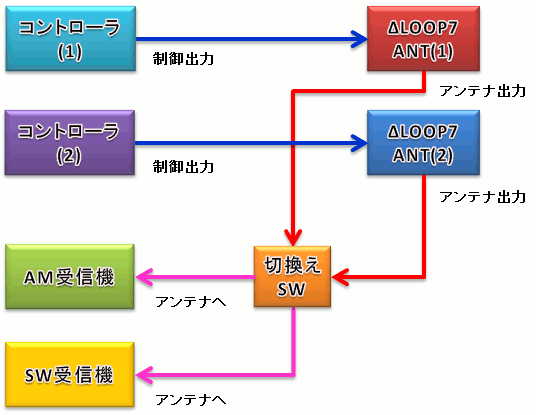 | 単純にコントローラは2台あります。それぞれのΔLOOP7からのアンテナ出力を切換えながら受信機に接続しています。 | ||||||||||||||||||||||||||||||||||||||||||||||||||||||||||||||||||||||||||||||||||||||||||||||||||||||||||||||||||||||||||||||||||||||||||||||||||||||||||||||||||||||||||||||||||||||||||||||||||||||||||||||||||||||||||||||||||||||||||||||||||||||||||||||||||||||||||||||||||||||||||||||||||||||||||||||||||||||||||||||||||||||||||||||||||||||||||||||||||||||||||||||||||||||||||||