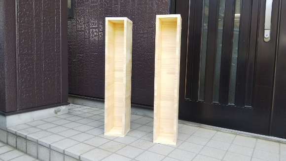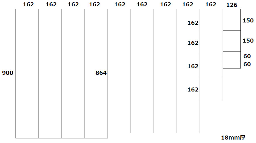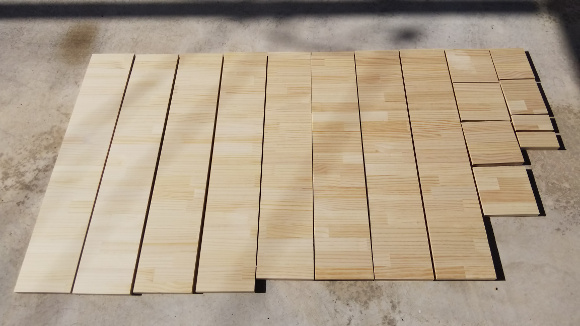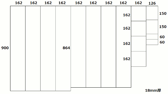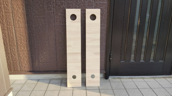| 板材はパイン集成材を今回も選択しました。合板より加工がはるかにしやすいです。まあカットは板を購入したホームセンターさんでやって頂いていますので自分で加工するのは丸穴開けだけなのですが、電気ドリルでの穴開けが歳を取ると共にしんどくなってきていますので、この板材は良いと思います。板厚が18mmですので、重量感はあります。 | |