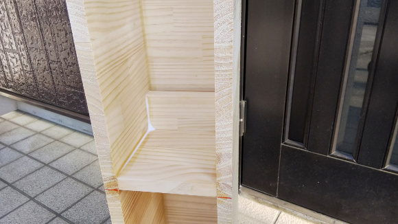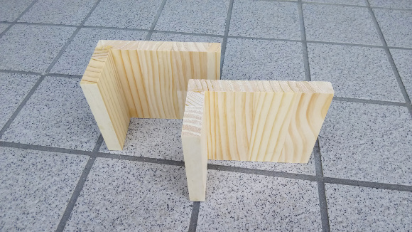 | 板厚が厚いので木工用接着剤のみで組み上げていきます。浮きのないように重しをするなどしてしっかりと接着していきます。 | |