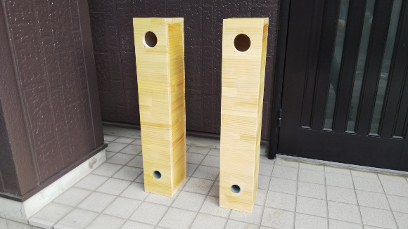 | (スピーカー用とバスレフ用の穴を開ける) | |