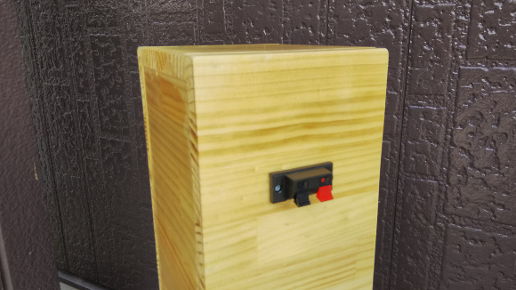 | スピーカーユニットを配線してネジで取り付けて堂々の完成です。さてどんな音を聴かせてくれるのでしょうか。期待しましょう。 | |