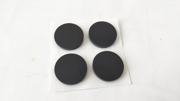| 底面には丸いゴムシートを貼り付けます。床との緩衝材になります。 | |