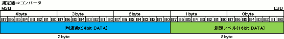 | 24bitのデータにしています。7セグメント表示が6桁ありますので、一桁ごとの表示に分解して送っています。測定データは計算上0.01の位までありますが、変動が大きいので今回表示は使用しませんでした。 | |