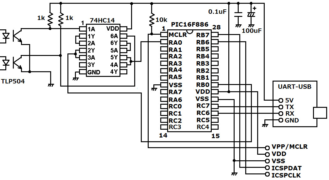 | 製作機器とPCをつなぐためのインターフェイス回路にPICマイコンを使用しています。 インターフェイスマイコンのソースはこちらへ |