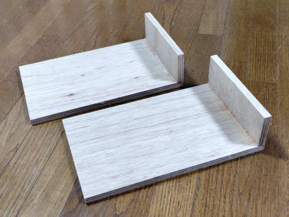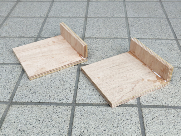 | 910mmx910mmの12mm厚合板で左右のエンクロジャーが取れるようにしています。基本昨年と同じですが、板が薄くなった分、寸法の調整をしております。 | |
