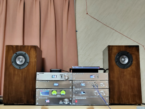 | (ディスクトップ型に配置した自作オーディオ機器) | |