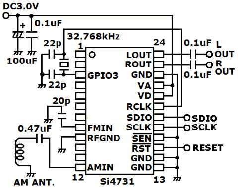 | このチップはAM/FMラジオ用ですが、操作を簡単にするためにAM専用としました。 | |
