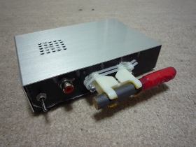 | 金属ケースに入れたのでバーアンテナは外に出しています。電池駆動なので電源スイッチを付けました。将来のFM拡張に向けてアンテナが付けられるようにしています。 | |