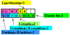 | 電源ON時にチップ情報などを表示します。右下にはバンク番号を表示します。 (バンク0=BK0,バンク1=BK1) |