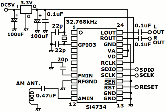 | このチップはAM/FM/SWラジオ用ですが、操作を簡単にするためにAM専用としました。 | |