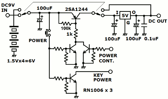 | 定番の電源回路ですが、今回電池駆動の切換が出来るようにしてみました。これでアウトドアでの使用が出来ます。やはりAMラジオはいろんなところで聞きたいものですよね。 | |