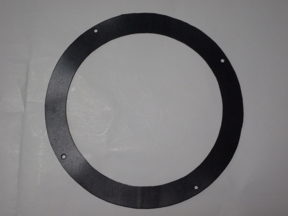 | 低音用なので特定の周波数鳴きはないと思いますが、1mmのゴムシートでパッキンを作ります。スピーカーの図面から型取りします。ネジ穴は必ずポンチで開けましょう。3mmが適当かと思います。 | |