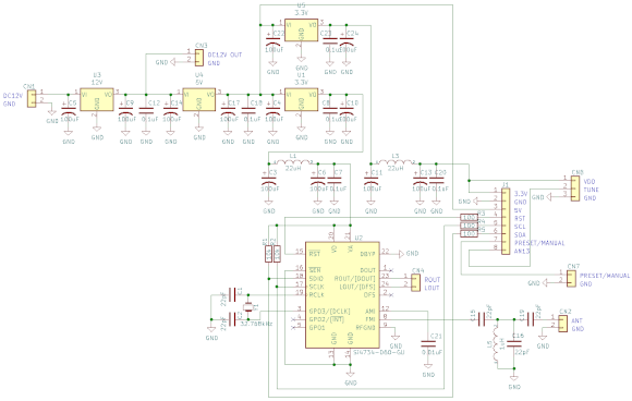 | (FMチューナーの回路図:電源、DSPチップ部) | |