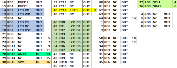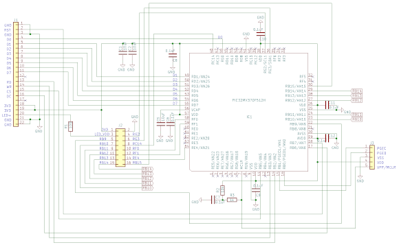 | PIC32MXボードのJ2コネクタの端子名は汎用ポート名にしています。次に説明するポート設定と照らし合わせながら接続して下さい。 | |