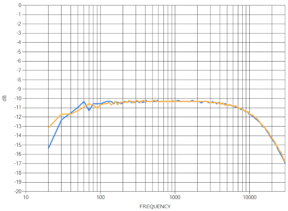 | -10dB程度の信号を入れて特性を測定しました。低域は80Hzからフラットですね。3dBダウンのポイントは16kHz程度でしょうか。満足出来る結果と思います。大変良く出来ました。自作の測定器も含めて。 | |