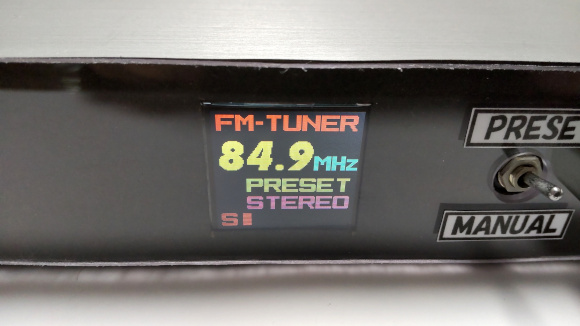 | 選局のボリュームはマニュアルとプリセットの切り換えが出来ます。プリセットはプログラム上12局分用意しています。プリセット操作時はボリュームを12分割してその位置に応じてプリセットされた周波数で選局します。プリセットの周波数はソースファイルを確認下さい。プリセット操作時は自動ステレオと強制モノラルの設定がプログラムで出来ます。 | |