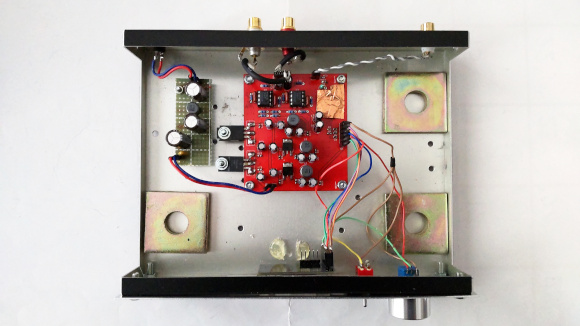 | 電源部を内蔵したことで、電源の配線がすっきりしました。ACアダプターって結構コンセントを邪魔するので、延長コードを経由しているのですが、その辺りが少しですが、減りました。電源部が安定したことで、何か聞こえる音も良くなったような気がします。多分、気がするだけだとは思いますが。 | |