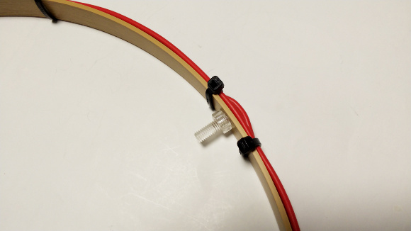 | φ6mmのネジが通る透明パイプを用意して取り付けます。これでループの円形が歪むことはないと思います。 | |