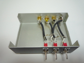 | ΔLOOP7のアンテナはそのままではひとつの受信機にしかつなげないので、アンテナセレクターを製作します。非常に簡単に作りましたので、専門家から見れば充分ではないかもしれませんが、実使用においては全く問題ありません。 | |