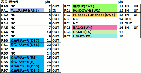 | (受信ユニットのマイコンポート割付) | |