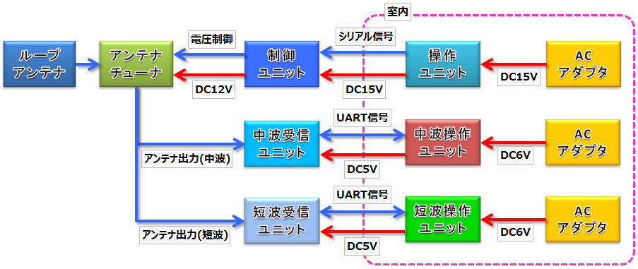 | 今回は短波ラジオを製作します。AMラジオの全局制覇は現在進行中ですので、しばらくお待ち下さい。原理はAMラジオと同じです。ラジオの受信部を屋外に設置して、受信感度を上げようとする試みです。ループアンテナは今回の一連の製作のものをを使用します。ループアンテナとアンテナチューナー、制御ユニットについてはこちらの記事をご覧下さい。 | |