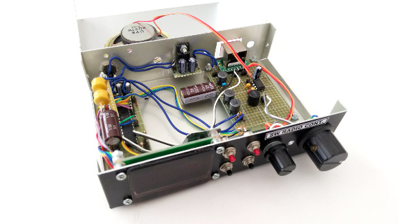 | このOLED表示モジュールは背面からかなりのノイズを発生しますので、アルミ板でシールドしています。今の購入出来るものはノイズを出さないもっと良いものかもしれません。 | |
