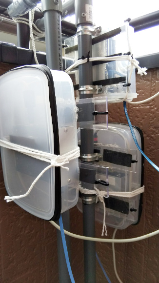 | 制御ユニットと各受信ユニットはベランダ側に隠してあります。さあ、これからは中波も短波も受信が楽しみになりました。受信報告は後日になりますが、まずはシステムの完成を祝いましょう。 | |