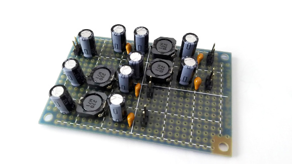| S/P DIF・レシーバー用の電源回路です。5Vから3.3Vを3系統を作ります。 | |