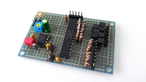 | スペアナ用ICはMSGEQ7を使用します。スペアナ用で現在入手しやすいのはこのICくらいですね。PICは定番のPIC16F886です。 | |