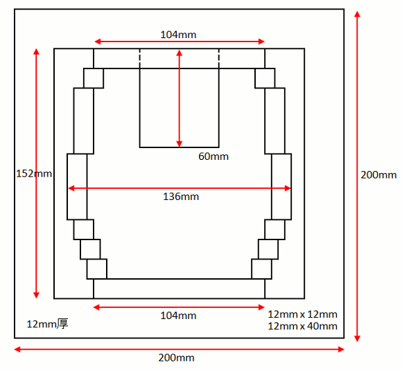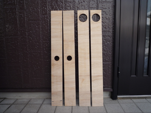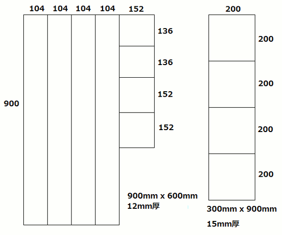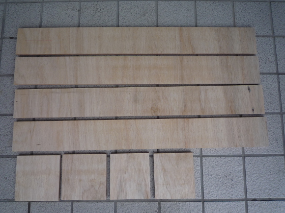 | エンクロージャー部は12mm厚合板、ベース部は15mm厚合板、ヒノキ材は12mm厚で40mm幅と12mm角材を使用します。 | |