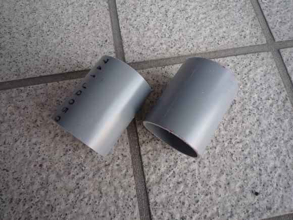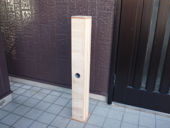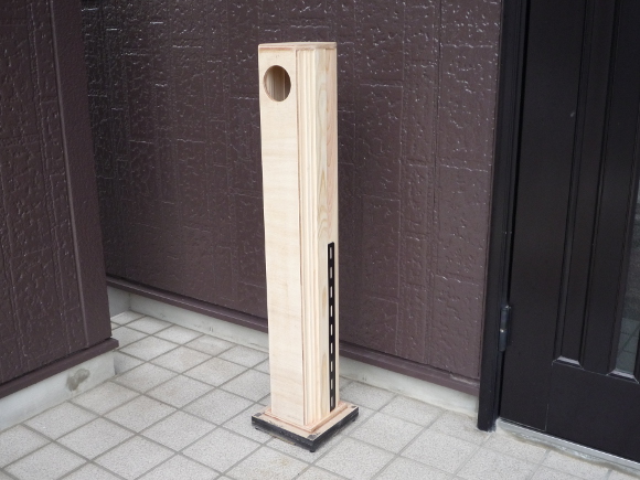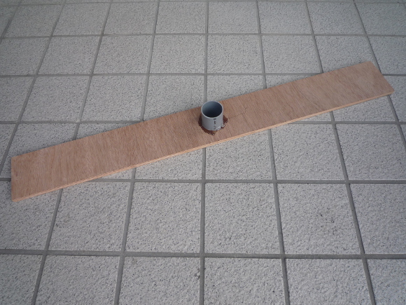 | ベースは過去の製作を流用しました。というより合板を買って切り出すのが少し面倒だったからです。過去に作り直したものから塩ビパイプを取り外し(というより切り取って)、ひっくり返して使います。ということで2枚重ねしていたベースには全厚みの半分まで穴が開いていることになります。またスピーカーを倒れにくくするために、より一層ベースの重さを増すことが必要になります。 | |