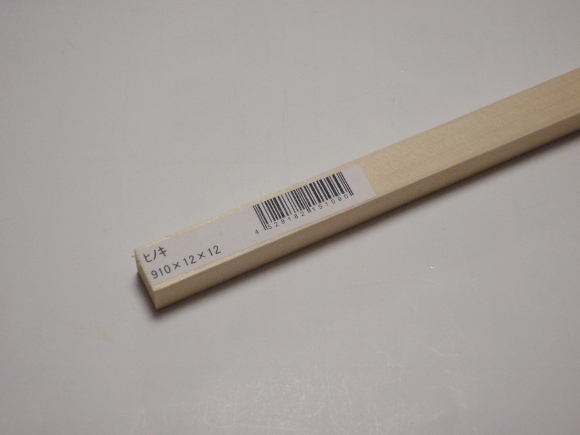 | 毎回同じヒノキ材を使っていますが、12mm角材には他の種類もあると思いますので材質にはこだわらず使って下さい。 | |