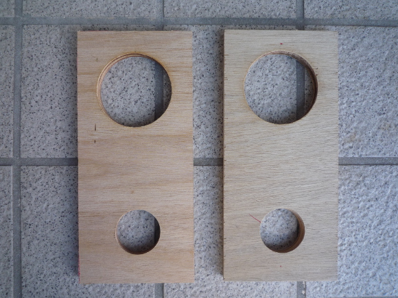 | (スピーカー用とバスレフポート用の穴を開ける) | |