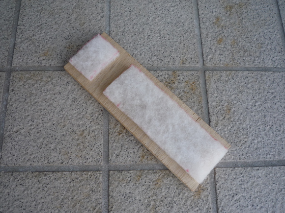 | 吸音材は手芸屋さんで購入出来るクッション用の素材(キルトシン)を使います。今回は少し厚めのものを使用しました。 | |