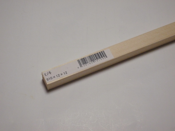 | (12mmの角材は私の定番のヒノキ材です) | |
