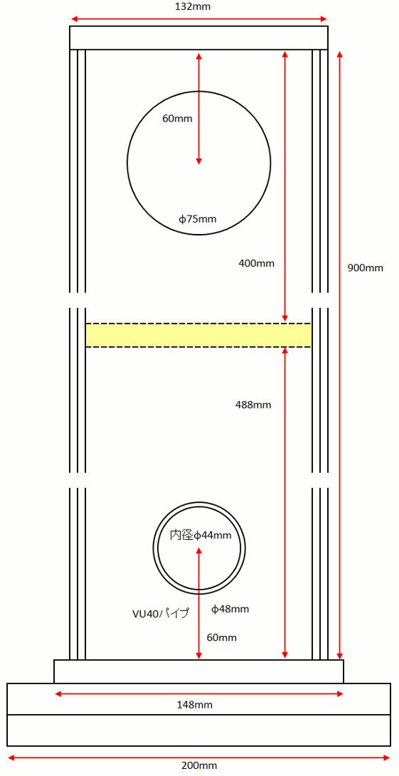 | バスレフポートはVU40の塩ビパイプを使用します。 | |