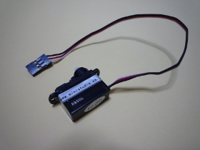| 小型のサーボモータはいつものように千石電商さんで購入しました。安価で良いです。これを駅の中にすっぽり入るように加工します。 | |