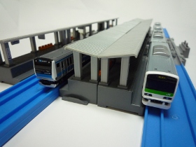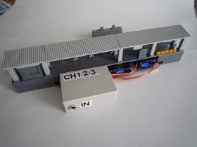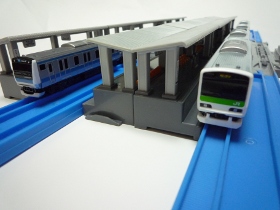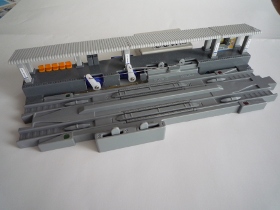 | 山手線と京浜東北線のコラボを行うためにはストップレールをもうひとつ電動制御する必要があります。特に複数線路がある駅を再現するには絶対必要です。まずはそれに先立って以前製作したストップレールの制御を駅に組み込む必要があります。なんとか駅に組み入れることが出来ましたのでその姿のみ公開します。 | |