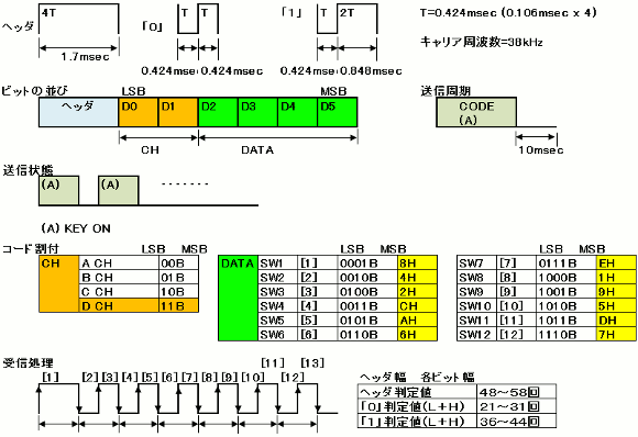 | フォーマットは従来と同じですが、SW7-SW12のキーを拡張してコードを割付ました。 | |
