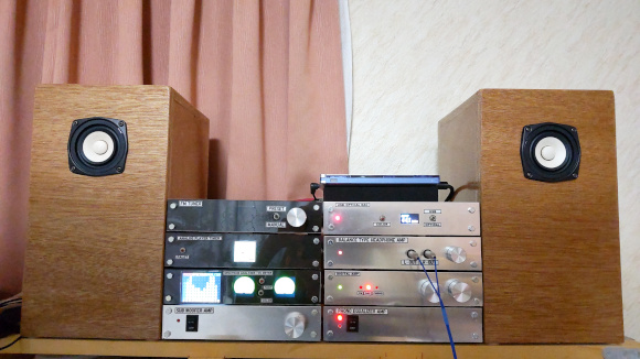 | 結構な時間を要しました。今年の夏休みはアナログレコードを聴きまくっていたので、オーディオクラフト工房の活動は夏休み明けからでしたが、先日やっと完成しました。光デジタル入力DACとUSB DACを統合したものに、サンプリング周波数表示を追加しました。ハイレゾ音源の周波数もちゃんと表示してくれるので、安心感に浸ることが出来ます。まずは完成した姿をどうぞ。 | |
