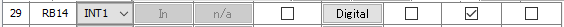 | RB14ポートはINT1に設定します。一応入力ポートなので内蔵プルアップも設定しました。当然ですが、RB9,RB10も入力ポートに設定して内蔵プルアップとしました。 | |