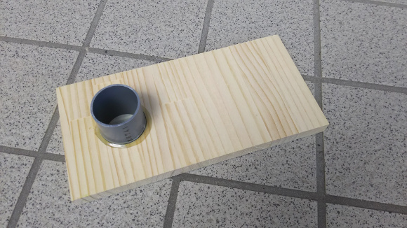 | バスレフポートはVU40の塩ビパイプを使います。長さ60mmにカットして背面板にしっかり取り付けましょう。私はいつも透明タイプの万能ボンドを使っています。 | |