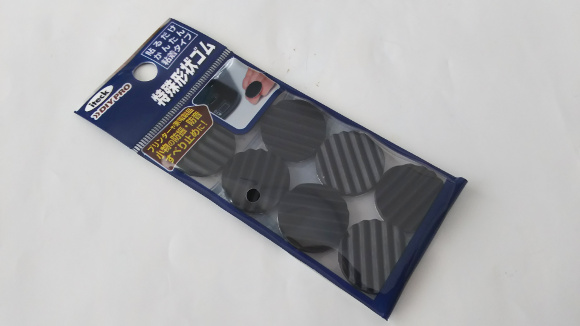 | 今回は底面に写真のようなゴムクッションを貼り付けました。丁度8個入りなので4隅に貼り付けると良いと思います。 | |
