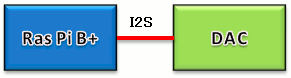 | DAC基板とラズベリーパイのつなぎ方は上図の通りです。I2S(3本)の他に電源とGNDを接続します。 | |
