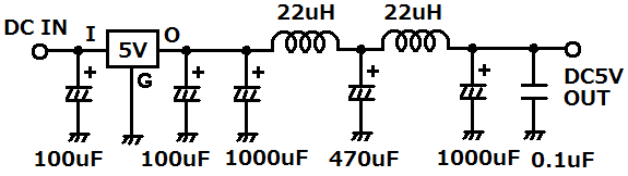 | 外部電源からの回路についてはノイズフィルター付きの5V電源回路を構成します。 | |