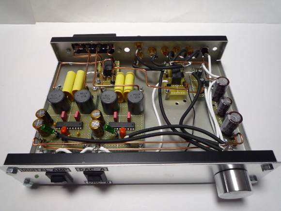 | これはこれで良かったのですが、この小型ケースは今の私の環境にはなじみません。そこで他の製作と同じ大きさのケースに入れて統一をはかることにします。またケースを大きくするので周辺の電源フィルターもケース内に組み込むことにします。 | |