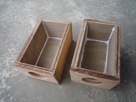 | ポイントは結合部分の塩ビパイプです。構造図にあるようにVU40パイプとVUDS40の接続パイプを使っています。5cmフルレンジですので、口径とのデザインバランスが取れるように横幅を100mmにしました。縦は黄金比率から162mmにしました。かなりバランスの取れたデザインではないでしょうか。基本はバスレフ型ですが、難しい計算は一切行っておりません。私の経験と勘で設計しました。 | |